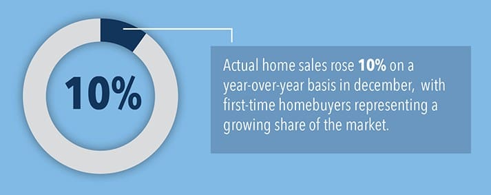 Canada’s housing market continued to prove its resilience in 2015, as the combination of rock bottom interest rates and a competitive finance system outweighed the negative shock of plunging oil prices on the economy. Actual home sales rose 10% on a year-over-year basis in December,[1] with first-time homebuyers representing a growing share of the residential mortgage market. Out of 14.1 million households in Canada, 9.74 million were home owners at the end of 2015 and nearly 60% have mortgages.[2]