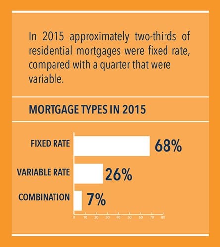 In 2015 approximately two-thirds of residential mortgages were fixed rate, compared with a quarter that were variable (see Box 1). For 2015 purchases, 76% were fixed rate compared with just 20% that were variable.[4]